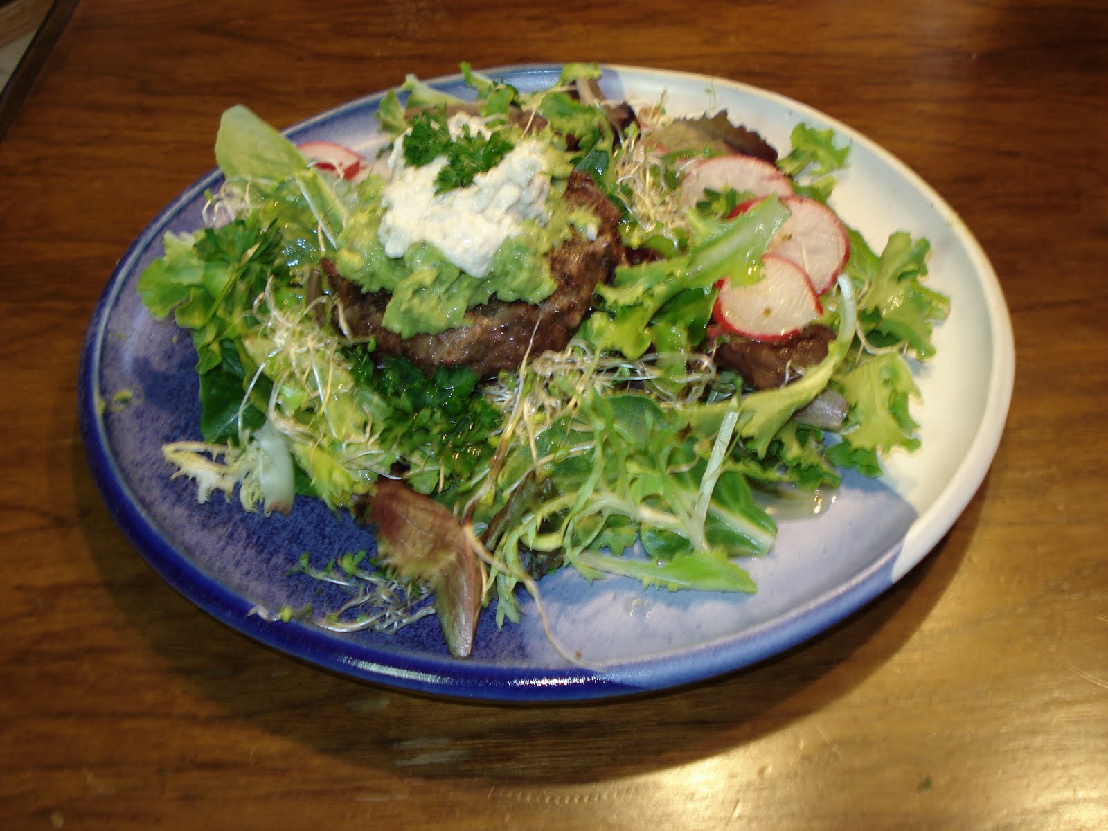 Place on top of a some mixed greens and veggies and enjoy! I used some guac and cheeze as baby food for Jude and he loved it!